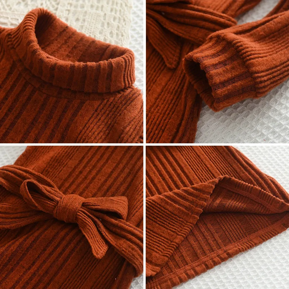 فستان بناتي صوف محبوك برقبة عالية